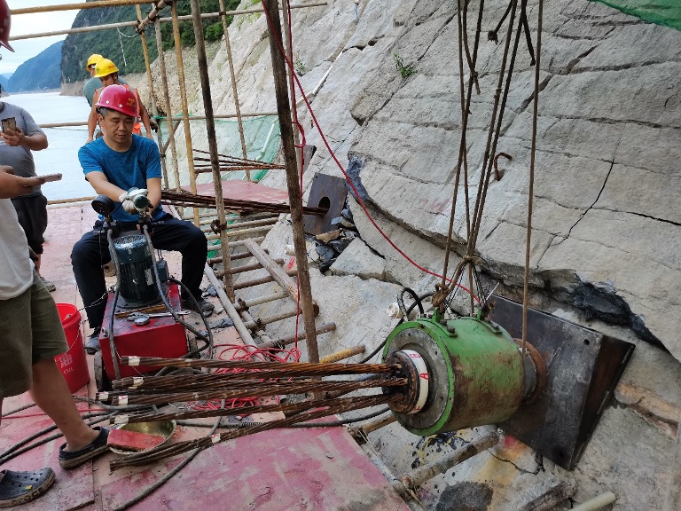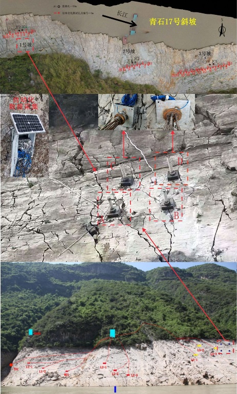 水库消落带岩体渐进性劣化形成潜在重大新生型滑坡是当前三峡库区地质安全面临的重大挑战,如何有效防控水库消落带岩体劣化是水库地质灾害研究中亟需解决的新问题。中国地质调查局武汉地质调查中心积极探索水库消落带岩体劣化防控的新技术,历时近三年,基于新设计方法、新材料、新工艺相关试验理论研究,试制研发了大吨位玄武岩纤维新型锚索,并成功应用于三峡库区巫峡青石17#顺向坡消落带岩体加固工程,率先建立了三峡库区消落带岩体劣化自动化监测与绿色防护技术研究的综合示范应用点。