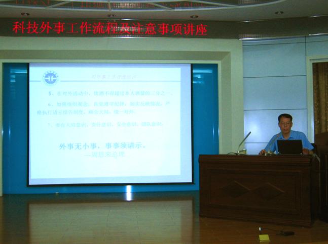 应武汉地质调查中心邀请,5月13日上午,中国地质调查局科技外事部外事处蒋仕金处长作了“外事工作流程及注意事项”讲座。蒋仕金处长就“外事工作管理及项目申报程序”、“护照签证管理”及“外事礼仪和外事纪律”等三个主要方面进行了深入浅出的讲解,特别强调了外事纪律的有关问题和注意事项,强调了外事工作的重要性、严肃性和规范化管理要求,使我中心广大科技人员受益匪浅。中心主任姚华舟、中心党委书记潘仲芳、广大科技工作者等80余人参加了会议。