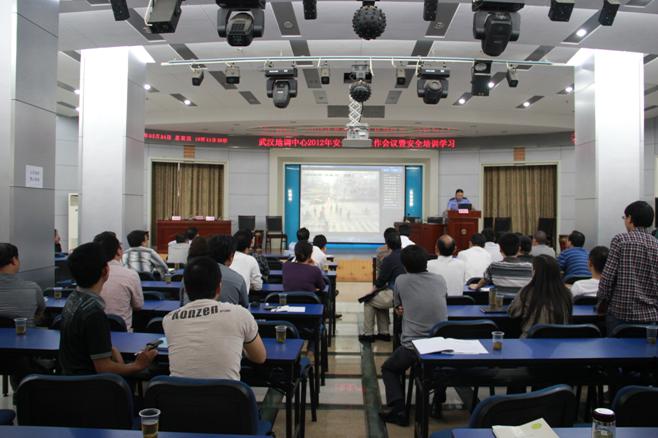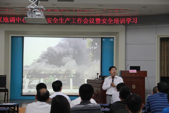 2012年5月24日,武汉地调中心召开2012年度安全生产会议并举办了安全学习培训。中心主任姚华舟、中心党委书记潘仲芳、中心副主任张旺驰出席会议。中心各部门负责人、分管安全领导、安全管理员,各项目负责人、副负责人、项目组安全员,全体驾驶员等80余人参加了会议和培训。