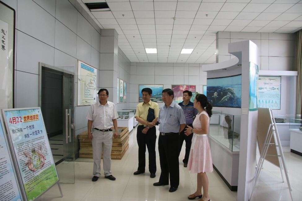 在中心主任姚华舟、党委书记潘仲芳的陪同下,李海清组长一行视察了中心基地建设、职工食堂、龙化石博物馆、职工住宅小区。