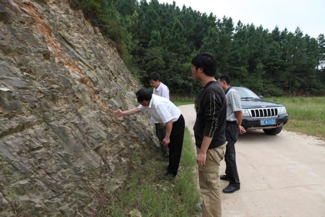 8月24日-25日,武汉地调中心主任姚华舟在勘查技术室主任陪同下,前往幕阜山北缘岩体1/5万重力调查项目组所在地(湖南省临湘市桃林镇)进行物探工作野外调研,看望项目组野外工作人员。