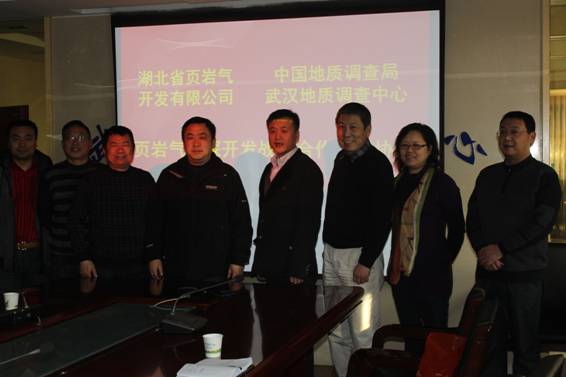 2014年1月21日武汉地质调查中心与华电湖北省页岩气开发有限公司在武汉签署了战略合作协议。根据协议,双方将在湖北省页岩气调查研究与勘探开发方面开展全面合作;武汉地质调查中心发挥基础地质、盆地分析、岩矿测试等方面的优势为页岩气勘探开发提供技术支持;华电方面将在科研经费、研究资料等方面对武汉地质调查中心予以支持;双方还将建立定期人才技术交流学习机制,以此共同推进湖北省页岩气勘探开发。 协议签订后双方就下一步合作进行了深入的讨论,并决定首先就湖北省富有机质泥岩的形成环境与页岩气有利区带预测开展合作研究。