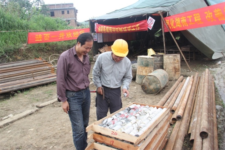 2014年7月1日,武汉地质调查中心地层古生物室副主任王传尚研究员、室安全员李志宏副研究员等一行到湖南省涟源市涟页1井现场开展野外钻井安全专项检查。