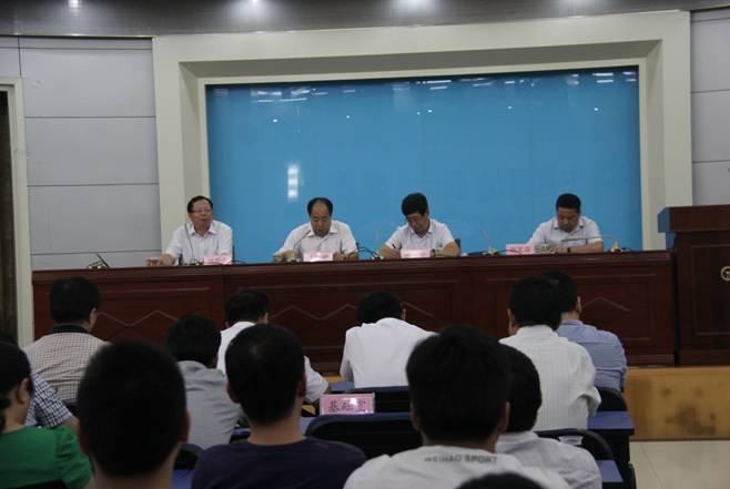 2015年9月15日下午,中国地质调查局武汉地质调查中心召开干部职工大会。中国地质调查局党组副书记、副局长王研、局人事教育部主任赵奇等一行4人出席会议。