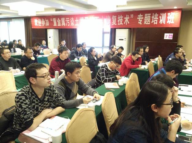 本次专题培训由来自中国科学院南京土壤研究所、环境保护部南京环境科学研究所、轻工业环境保护研究所、北京矿冶研究总院、中国地质大学(北京)等长期从事土壤地下水污染防治修复研究、风险评估、工程修复的知名专家授课。培训内容涵盖土壤重金属污染及其修复、纳米材料用于有机污染场地的修复研究、金属矿山废弃物堆场土地复垦与生态恢复、场地环境调查技术方法与案例分析、土壤环境监管政策法规和标准体系建设、污染场地人体健康风险评估技术方法与案例、地下水污染防治修复技术等方面。来自地勘、有色、冶金、煤炭、核工业、环保等部门和企业的20余家单位80余人参加培训。