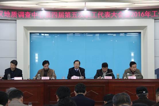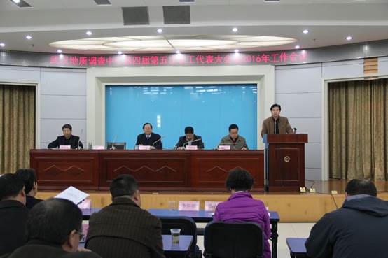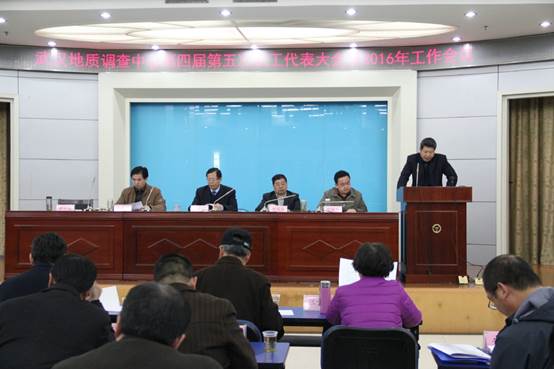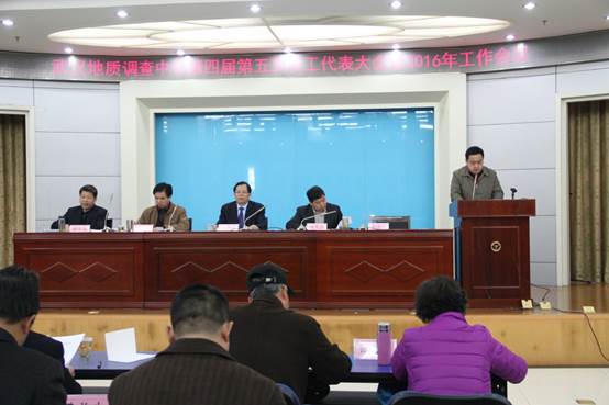 2016年3月25日,中国地质调查局武汉地质调查中心召开第四届第五次职工代表大会暨2016年工作会议。会议的主要任务是:深入学习贯彻党的十八届三中、四中、五中全会精神,认真落实全国地质调查工作会议和中国地质调查局党风廉政建设会议精神,总结2015年工作,部署2016年任务。