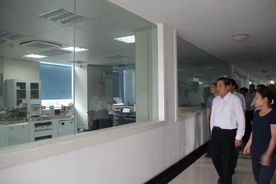 赵凤桐同志一行看望了武汉中心实验室工作人员,参观了实验室Triton热电离同位素质谱仪、MAT253稳定同位素气体质谱仪和Nu noblesse惰性气体质谱仪,并了解了实验室地质样品测试分析有关情况;随后,赵凤桐同志兴致勃勃地参观了龙化石博物馆,对龙化石博物馆的建设和发挥科普作用提出了指导性意见和要求;他指出武汉地调中心的专业特色明显,页岩气调查成绩突出,“出成果是硬道理”的发展理念很好,要求武汉中心为地方经济建设和社会发展多作贡献。
