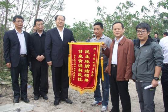 2016年12月17日,海南省定安县雷鸣镇竹根田村,中国地质调查局党组副书记、副局长王研将武汉地质调查中心施工的一口供水井正式移交给村委会,该村专门制作锦旗向中国地质调查局表示感谢。村长莫雄诗感慨地说:“由于缺水,村里饮水问题一直无法解决,最干旱的时候甚至只能通过消防车从外面拉水到村里。中国地质调查局帮助我们村勘测打井,解决了老百姓吃水难题,让我们村真正实现了路通、电通、水通”。
