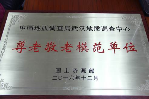 2017年1月17日,国土资源部召开了离退休干部春节联欢会,会上隆重表彰了国土资源部尊老敬老模范单位、离退休干部工作先进集体和先进工作者,国土资源部党组成员、副部长、国家土地副总督察张德霖等部领导为获表彰单位、集体和个人颁奖。武汉地调中心荣获部“尊老敬老模范单位”荣誉称号!中心党委委员、纪委副书记曾冶红参加会议并代表中心领取获奖奖牌。