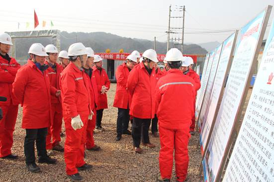 在武汉地调中心组织实施的鄂宜页1井钻探施工现场,胡茂焱详细听取了工程进度、取得的重要成果、安全生产管理、春节期间一线人员工作和生活安排等方面的情况汇报,对工程进度、前期工作给予充分肯定。他强调指出,项目组一定要和施工单位团结一心,按照预定的工期和成果目标,精心组织施工,确保工程质量、安全和环保,力争早日实现页岩气勘探评价更大突破!胡茂焱和一线工作人员亲切交谈,询问大家的工作和生活情况,再三叮嘱项目组和钻探施工单位——江汉石油工程公司,一定要安排好春节期间一线工作人员的生活,利用网络等形式方便一线人员在春节期间能随时与家人联系互动,确保他们身处异乡也能度过一个愉快、温暖的春节。