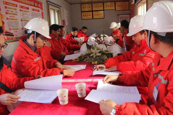 江汉石油工程公司钻井一公司党委书记许长平表示,感谢武汉地调中心领导和职工的关怀和关心,他们将以优秀的团队、一流的技术、高度的责任感,把在重庆焦石坝地区实施页岩气勘探取得的成功经验运用到鄂宜页1井,保质保量全面完成各项工作任务。他同时表示,将周密安排春节期间一线人员的工作和生活,让一线人员过一个特别而有意义的春节。