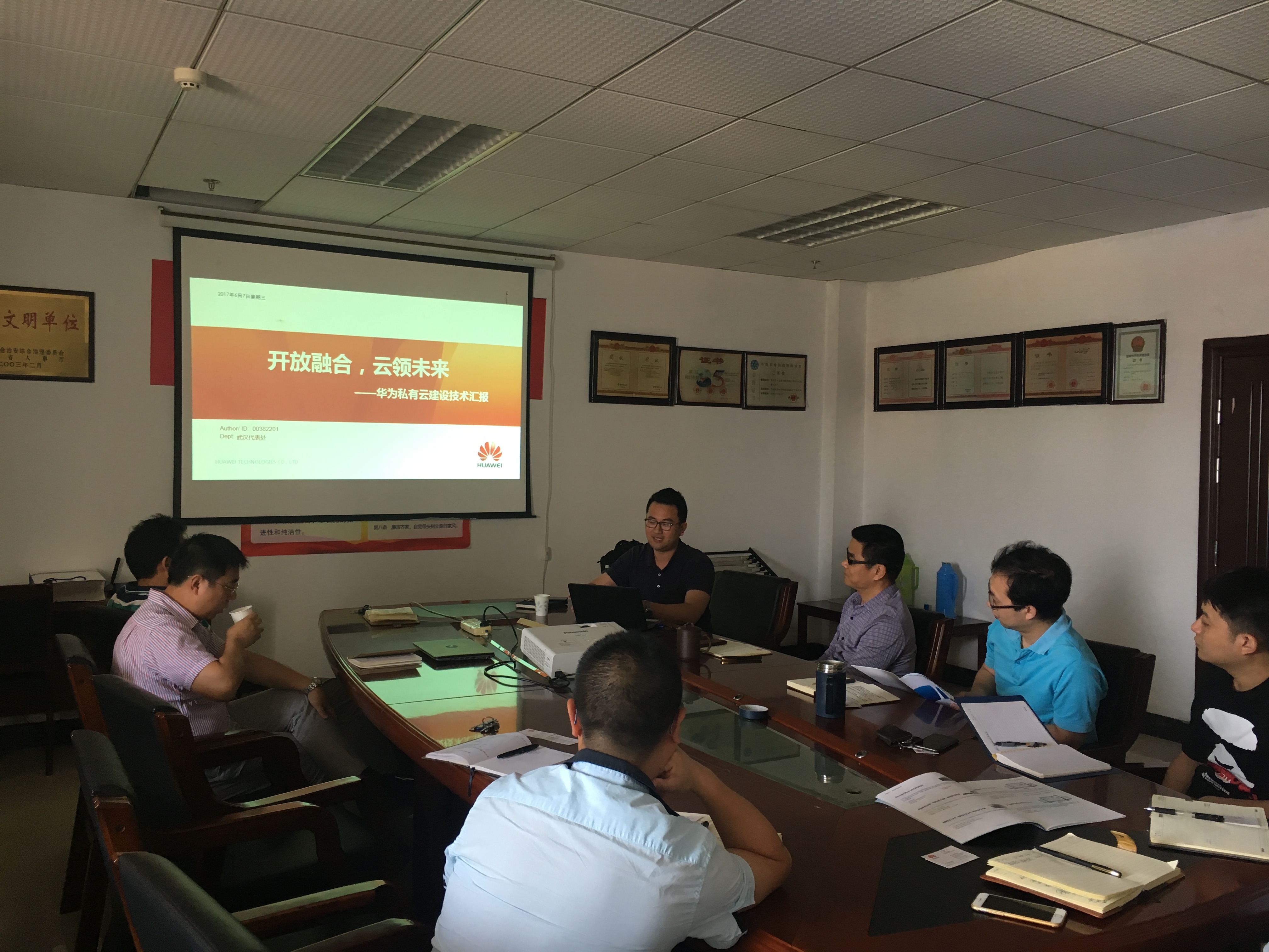 为保障中南地区“地质云”节点建设工作的顺利开展,2017年6月7日,武汉地调中心与华为云计算产品与解决方案的专家共同探讨“地质云”建设方案,重点讨论了大区中心云建设中的计算、存储、网络、安全等基础设施资源的建设问题。