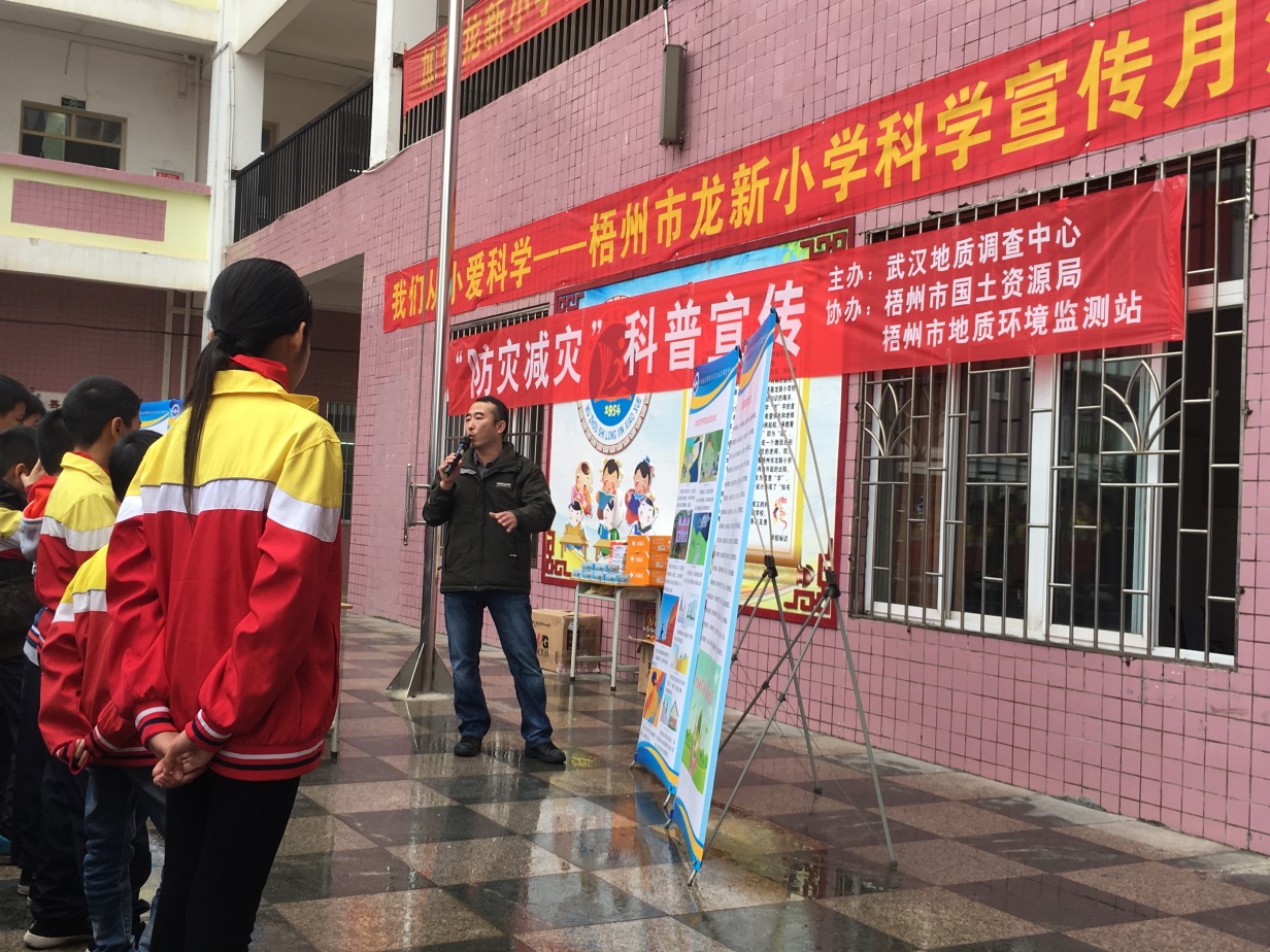 2017年11月28日,应广西梧州市龙新小学梁碧莲校长的邀请,由中国地质调查局武汉地质调查中心主办、梧州市国土资源局、梧州市地质环境监测站协办的“防灾减灾”科普宣传活动在该校顺利举办。