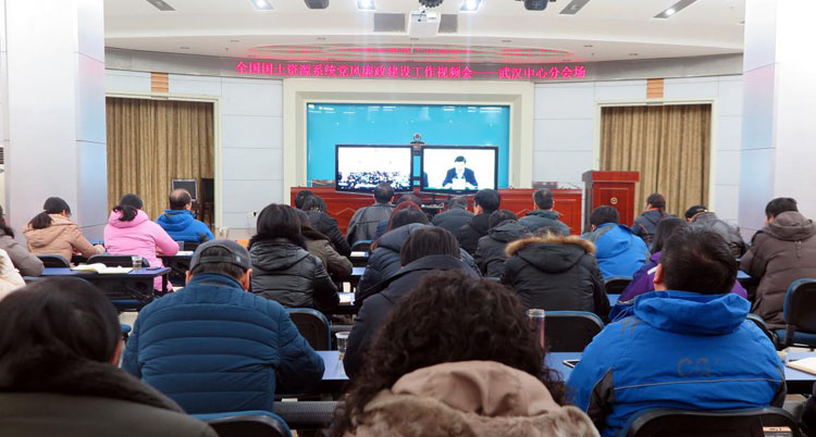 2018年1月29日上午,武汉地质调查中心设立分会场,组织参加全国国土资源系统党风廉政建设工作视频会议。在汉中心领导、中层干部、工程首席、项目负责人、纪检监察干部及在汉职工近100人参加了视频会。