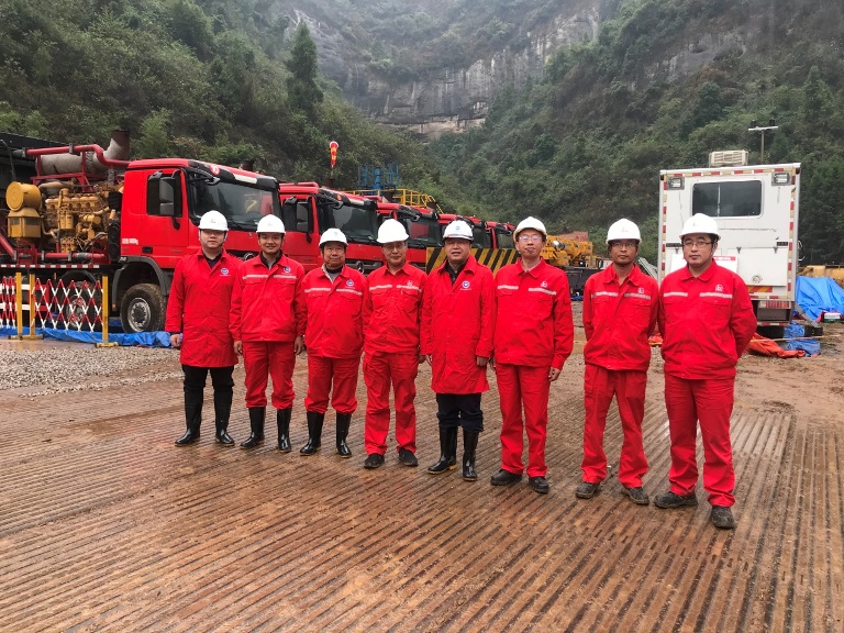 2019年10月22日,中国地质调查局武汉地质调查中心主任刘同良一行赴宜昌市点军区鄂宜参3井现场调研检查工作,武汉地调中心副总工程师陈孝红研究员、中石化江汉石油工程有限公司压裂高级专家龚起雨、页岩气技术服务公司经理袁发勇等陪同。