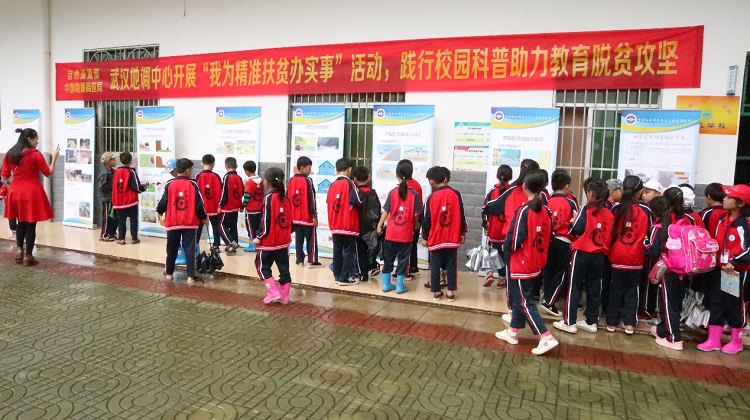10月31日,中国地质调查局武汉地质调查中心海口江东新区综合地质调查二级项目野外临时党支部,在琼中县湾岭学校成功举办“我为精准扶贫办实事”主题党日暨“科普校园行”活动。活动聚焦“两不愁、三保障”目标,深入学习习近平总书记在庆祝中华人民共和国成立70周年大会上的重要讲话、习近平总书记对脱贫攻坚工作重要指示和李克强总理批示精神,贯彻落实中国地质调查局党组要求,研究推进项目工作措施,以实际行动践行校园科普、助力琼中县教育脱贫攻坚工作。