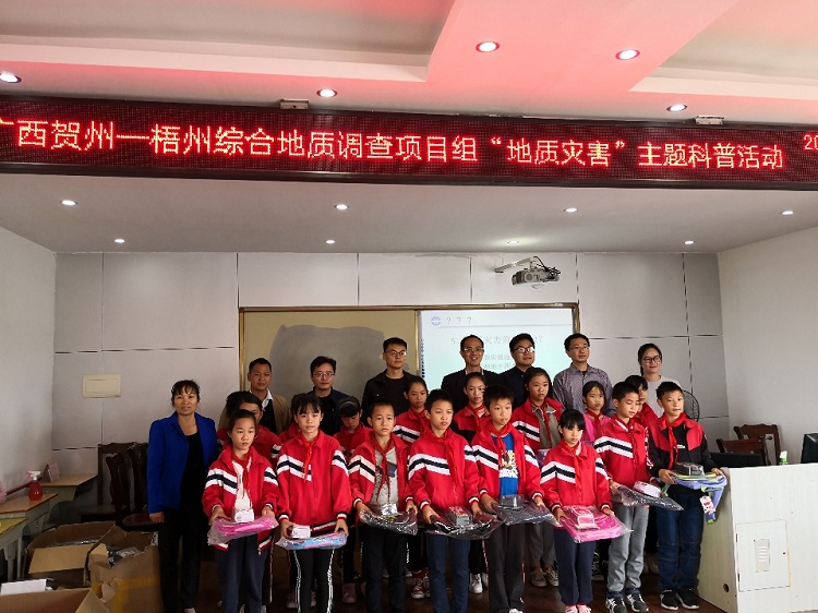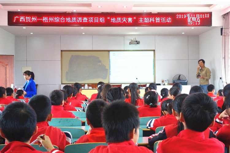 2019年11月1日,中国地质调查局武汉地质调查中心“广西贺州-梧州综合地质调查”项目组联合项目协作单位中国冶金地质总局山东正元地质勘查院,在首届全国文明校园-广西壮族自治区贺州市钟山县石龙镇中心小学开展了地质灾害专题科普宣传活动。
