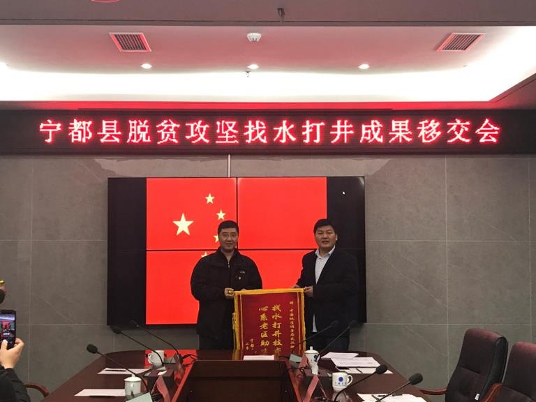 2020年1月8日,在江西赣州宁都县举办的宁都县脱贫攻坚找水打井成果移交会上,中国地质调查局武汉地质调查中心将2019年实施的7口水井正式移交给宁都县人民政府。自然资源部赣南老区扶贫开发中心、宁都县委县政府、宁都县自然资源局、宁都县水利局、中国地质调查局南京地质调查中心、赣南地质调查大队等单位领导和项目人员参加了移交仪式。