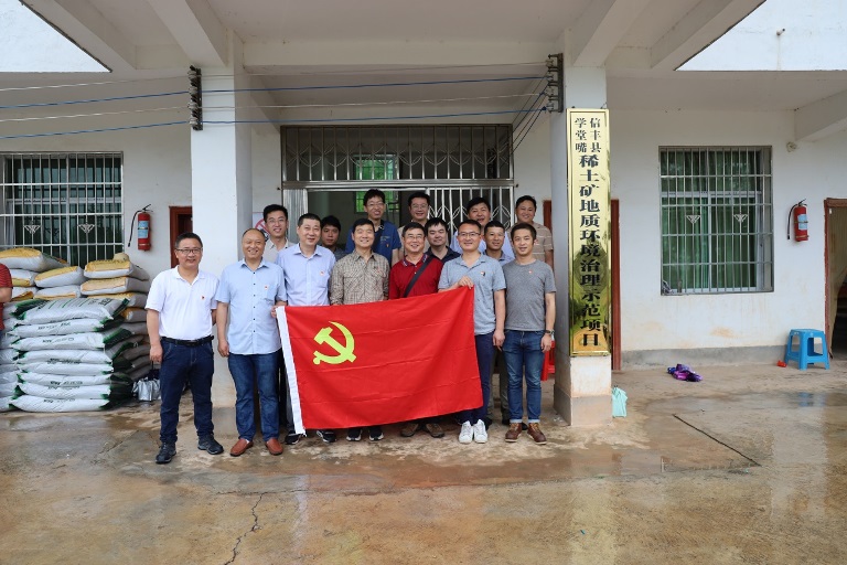 上午,党员同志们实地参观了学堂嘴稀土矿山地质环境修复治理项目。学堂嘴稀土矿山位于赣州市信丰县桐木村,近年来通过种植脐橙、杨梅等经济作物,实现由荒漠变绿洲的转型发展,不但恢复了往昔的青山绿水,还在一定程度上解决了当地农民的就业问题,帮助当地群众脱贫增收。党员同志们一致认为,矿山地质修复治理要深入贯彻习近平生态文明思想,坚持绿水青山就是金山银山的发展理念,不断发挥生态地质调查支撑作用,推进脱贫攻坚与生态文明建设有效衔接,真正做到让环境美起来、让群众富起来。