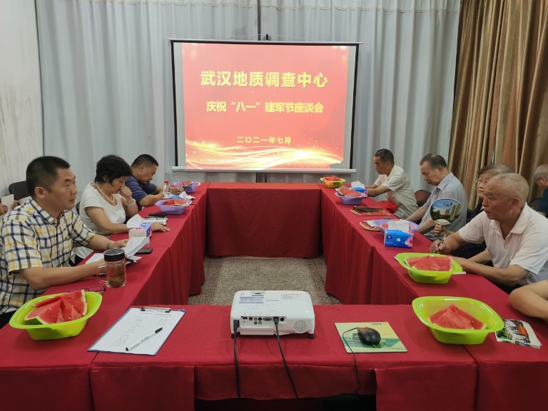 2021年7月30日上午,中国地质调查局武汉地质调查中心在宜昌基地召开庆祝“八一”建军节座谈会。党委委员、纪委书记曾冶红专程到宜昌基地看望在宜退役军人。在宜退役军人、宜昌基地党总支、各离退休党支部委员、离退休干部处相关同志参加了座谈会。