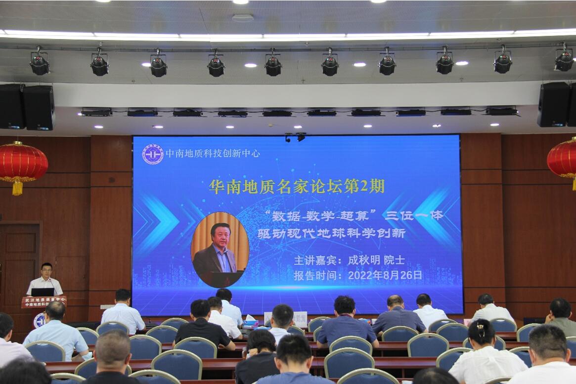 为促进中南地区地勘单位、科研院所和高校之间学术交流,加强地球科学区域大数据平台建设,助力地球科学创新发展,2022年8月26日,中南地质科技创新中心在武汉举办第二期“华南地质名家论坛”,特邀请中国科学院院士、中国地质大学(北京)地质过程与矿产资源国家重点实验室主任成秋明作题为《“数据-数学-超算”三位一体驱动现代地球科学创新》专题报告。