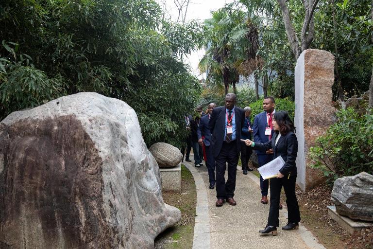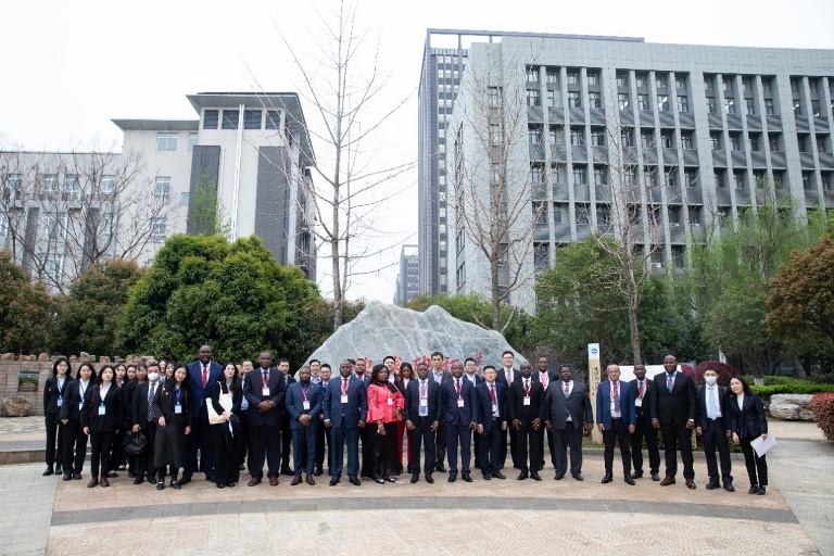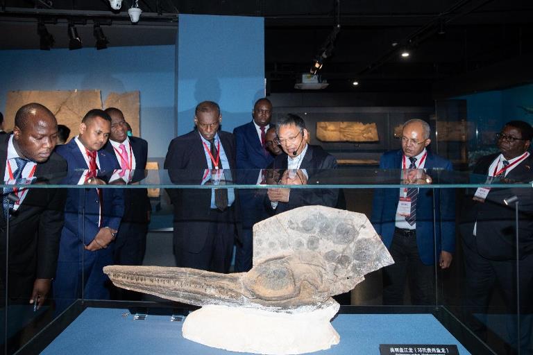 2023年3月23日,来自苏丹、摩洛哥、莫桑比克等十个非洲国家的驻华使节走进中国地质调查局武汉地质调查中心,参观“地球印记”科普园和海龙化石博物馆。
