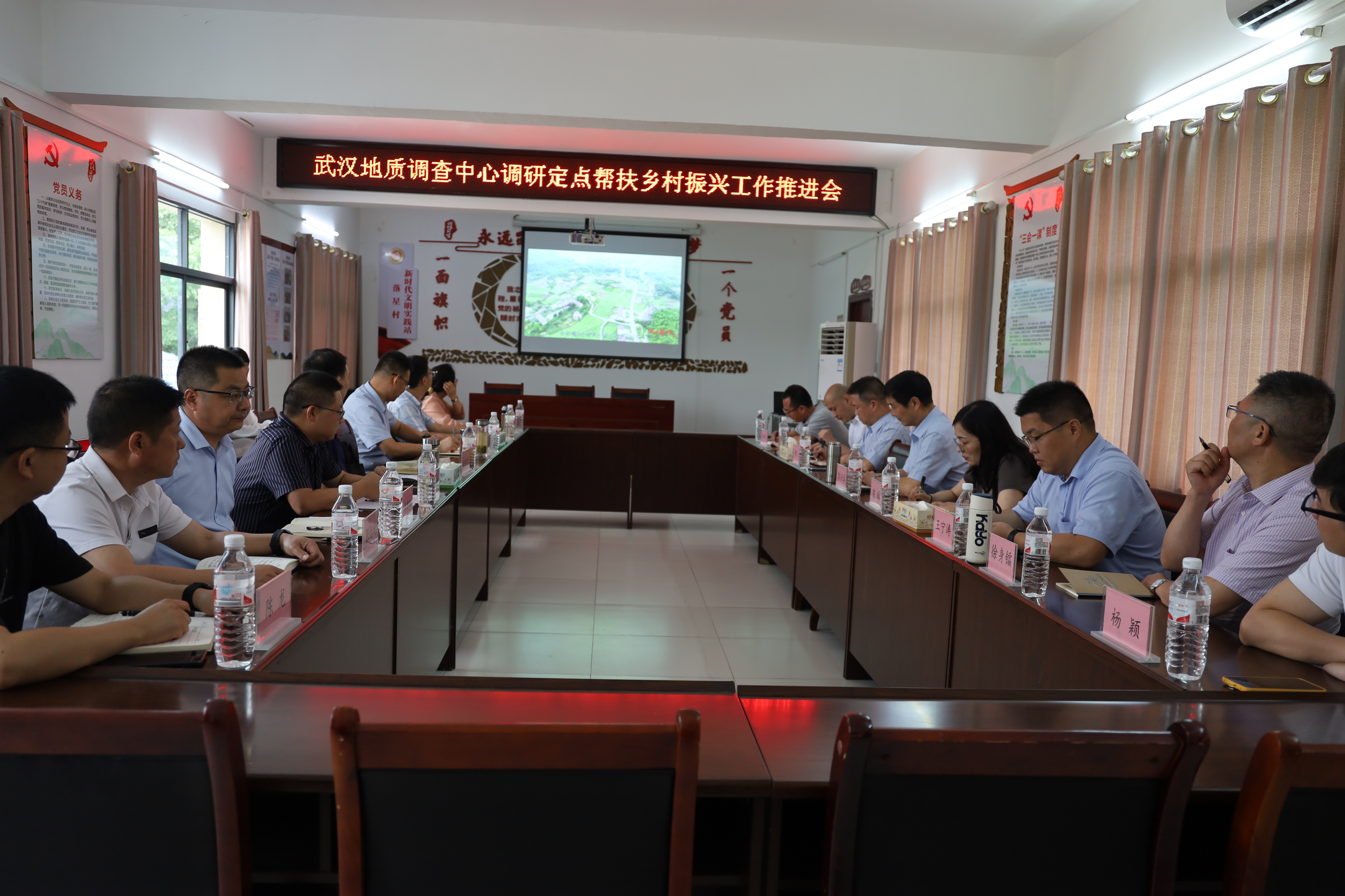 2023年7月13日,中国地质调查局武汉地质调查中心党委书记郭兴华一行前往远安县河口乡落星村开展乡村振兴新老驻村第一书记(工作队长)交接工作,并参加定点帮扶乡村振兴工作座谈会。远安县政协副主席、党组副书记雷官孝主持交接座谈会。