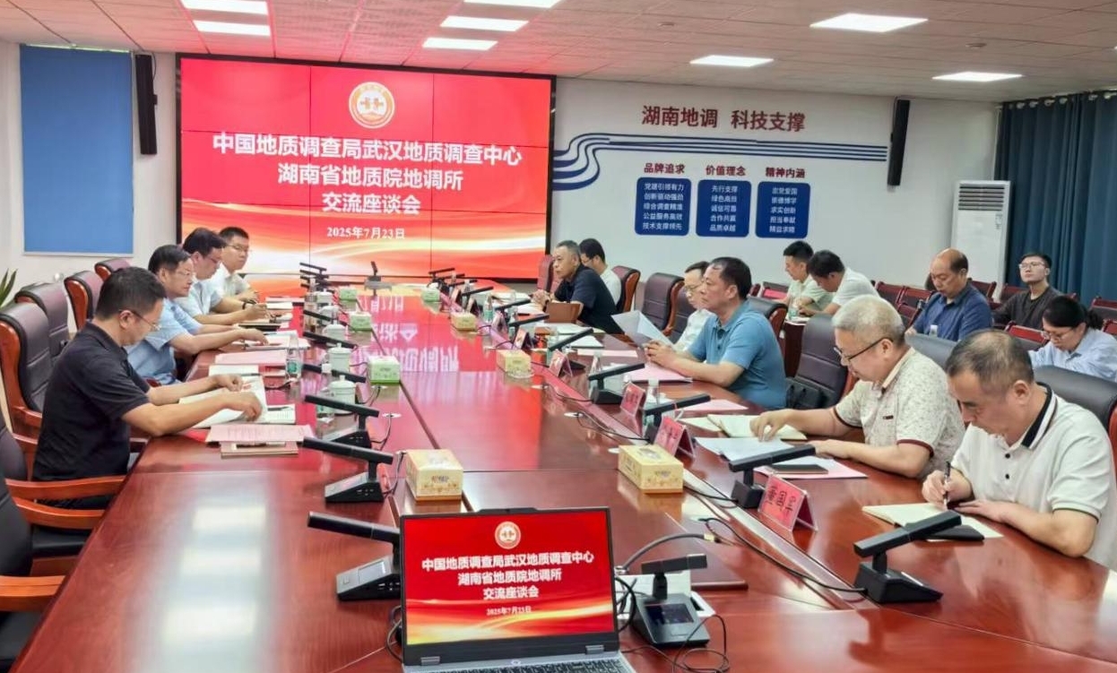 7月23日,中国地质调查局武汉地质调查中心主要负责人一行赴湖南省地质院地调所开展座谈交流。湖南省地质院党委书记谈文胜出席,湖南省地质院副院长刘拥军主持座谈会。