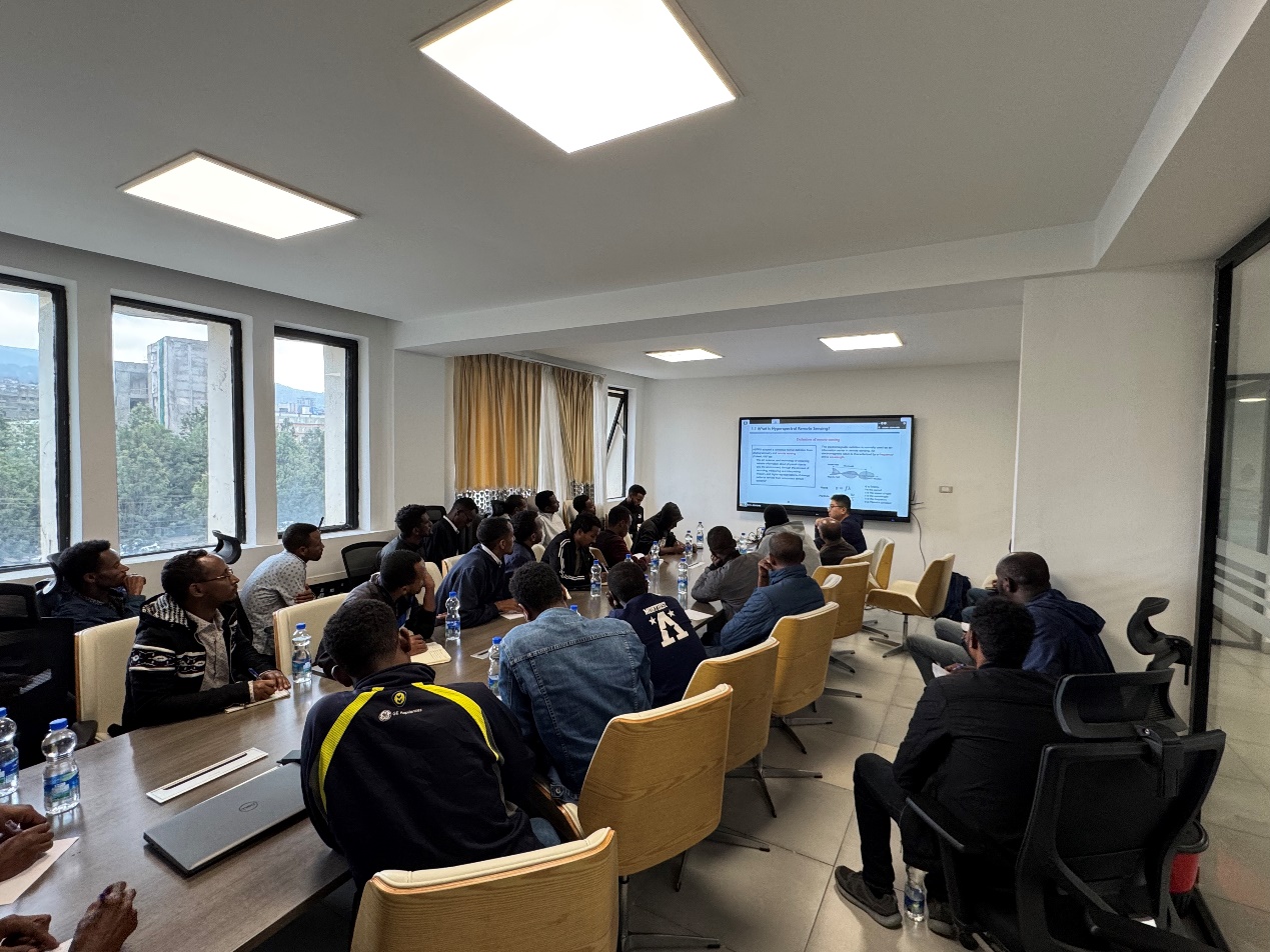 培训通过现场+视频会议形式进行,柳潇博士等专家线上授课,赵凯博士负责现场组织和翻译。培训系统讲解了高光谱遥感技术原理、矿物光谱特性、基于高光谱技术的矿产勘查技术体系,并剖析了近年来武汉地调中心在找矿实践中的典型应用案例。培训现场气氛热烈,与会人员对授课内容表现出浓厚兴趣,就数据获取、处理精度、野外验证等问题展开了深入探讨。 埃方总工希撒(Sisay)博士高度肯定了本次培训的成果,提出希望进一步深化与中心互动交流,共同谋划项目申报、人才培养等方面合作。