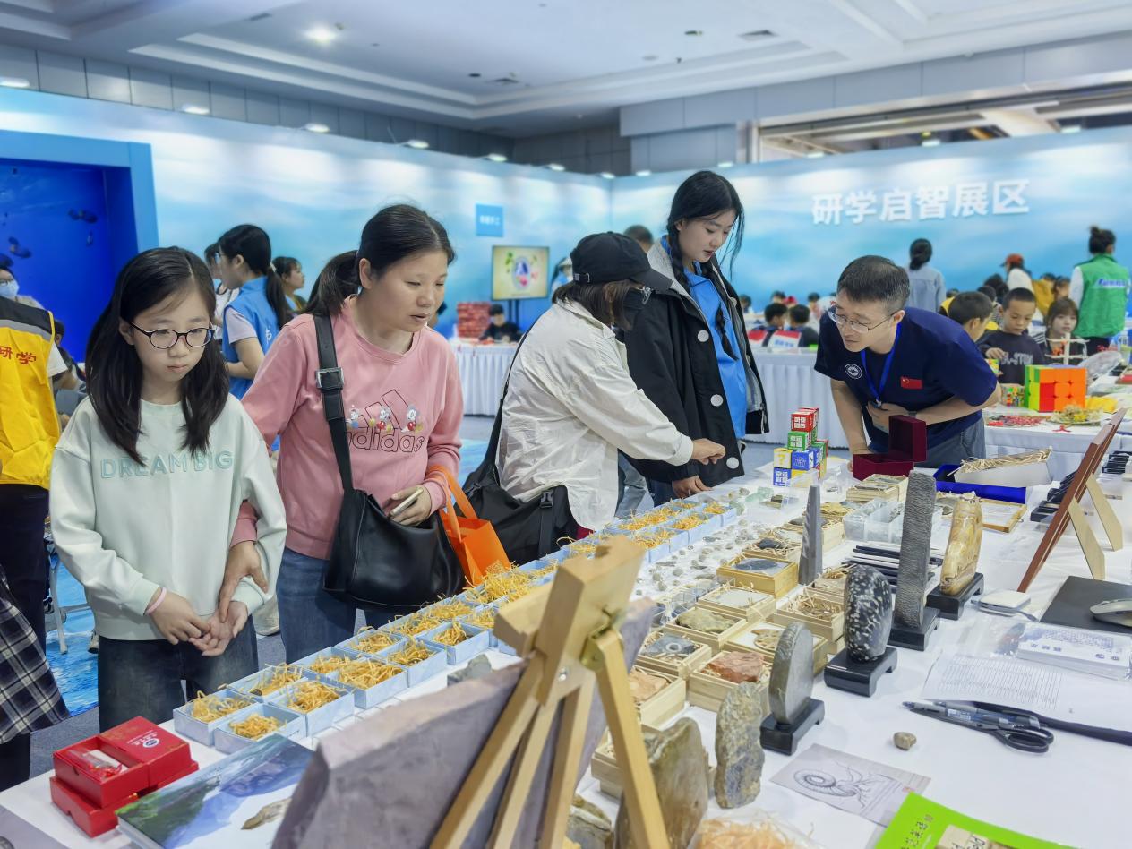 展会上,武汉地调中心精心布置了内容丰富的科普展示墙,通过图文并茂的形式向公众普及地球科学知识,生动展现生命演化的壮阔历程。现场展出的多件珍贵化石标本、精美矿物晶体和系列科普读物成为现场焦点,吸引了大量市民,尤其是青少年驻足观看。展位前始终人头攒动,众多好奇的观众与工作人员积极交流,现场气氛热烈。
