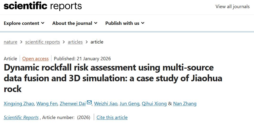 Zhao, X., Fen, W., Dai, Z. et al. Dynamic rockfall risk assessment using multi-source data fusion and 3D simulation: a case study of Jiaohua rock. Sci Rep (2026).