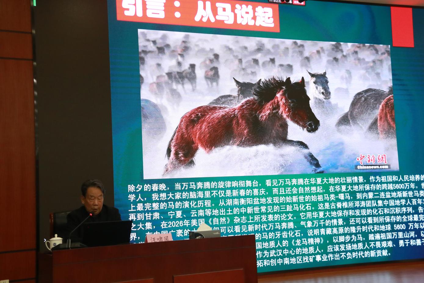 2026年2月27日,中国地质调查局武汉地质调查中心隆重举行2026年出征仪式,特别邀请原宜昌地质矿产研究所所长、中心退休地质专家汪啸风研究员莅临现场作专题授课,为即将奔赴各地野外一线的工作人员鼓劲赋能,中心领导班子成员和全体干部职工参加了此次授课。